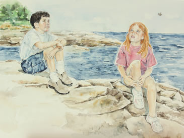 This was is my first published children's book. I was thrilled with Elizabeth Elder's story. I felt that it would allow me to showcase my love of nature and animals in the illustrations. I enjoyed the detailed watercolors of the animals, children and vegetation that is so beautiful along the coast of Maine. When I'm With You is a great read out loud story, with a bee hiding in every illustration.